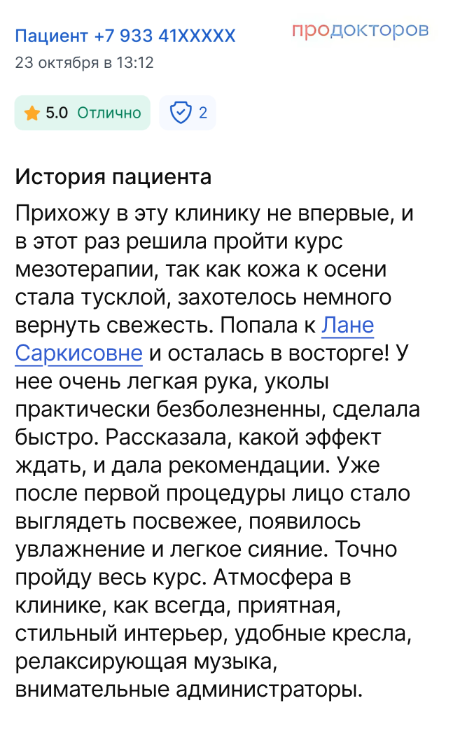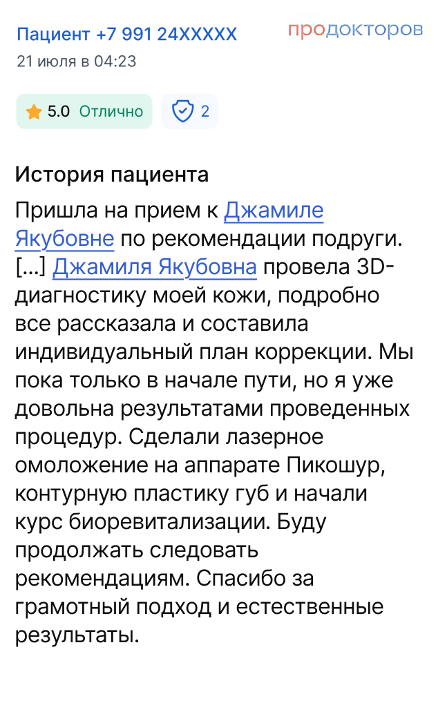 Мы практикуем персональный подход и строим работу на максимальном доверии. Для каждого пациента разрабатываем индивидуальную программу — от консультации терапевта и сдачи анализов до выбора процедур для лица. Сочетание медицинской точности диагностики с комплексным обследованием помогает достигать наилучшего результата.
